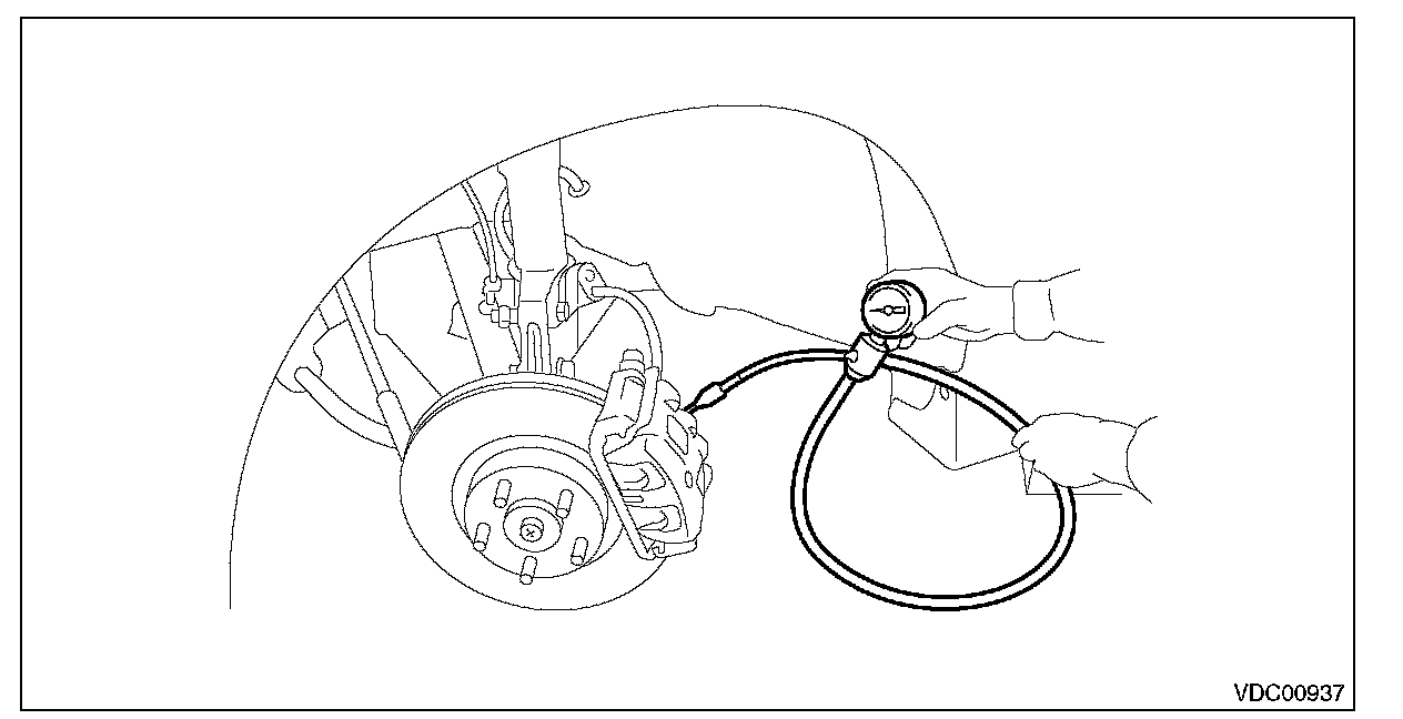 7) Disconnect the pressure gauges from FL and FR caliper bodies.