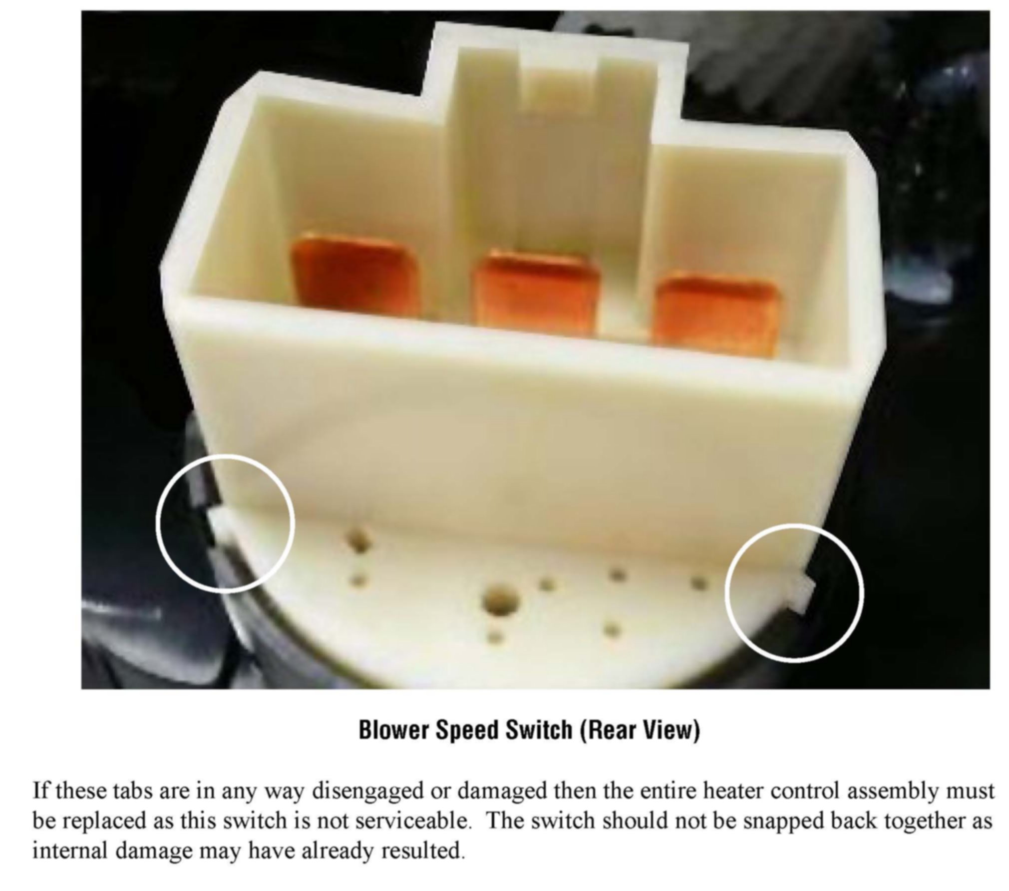 The purpose of this bulletin is to inform you of a precaution when removing the center panel assembly to prevent damage to the blower speed switch.