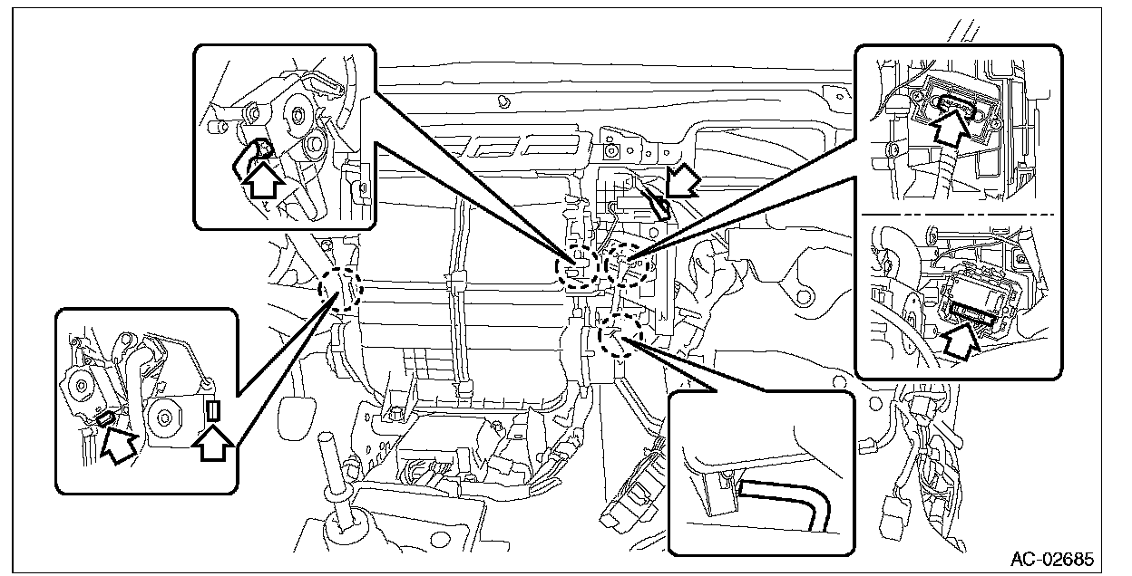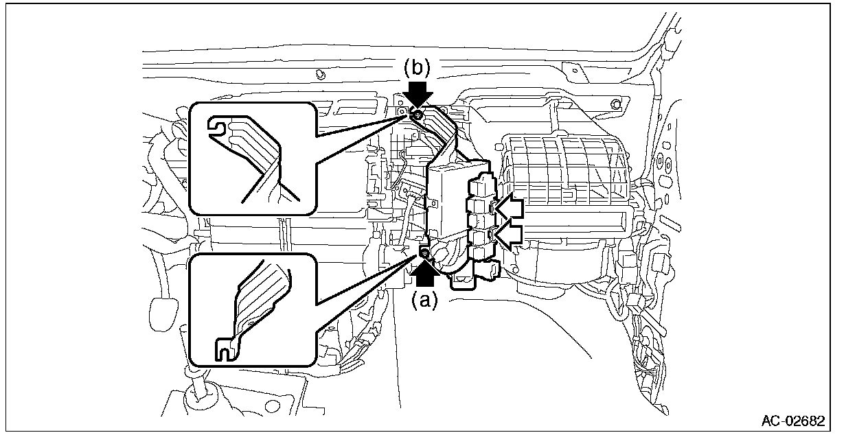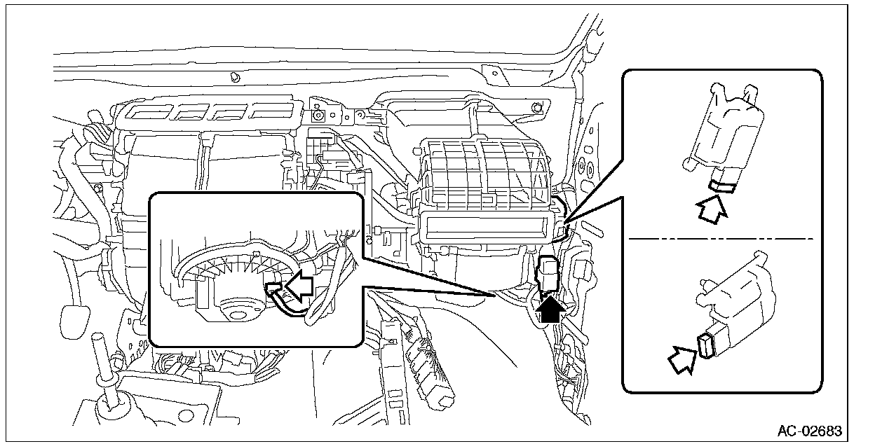 1. Disconnect the blower motor relay and each connector.