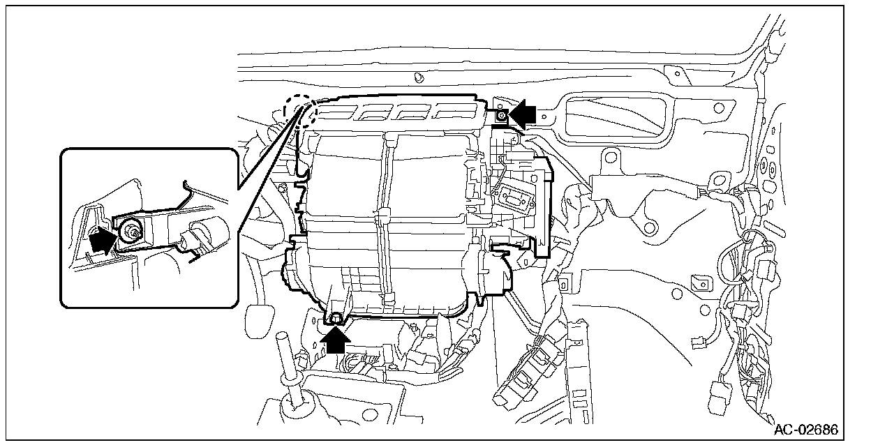 2. Remove the bolt and nuts, and remove the heater & cooling unit assembly.