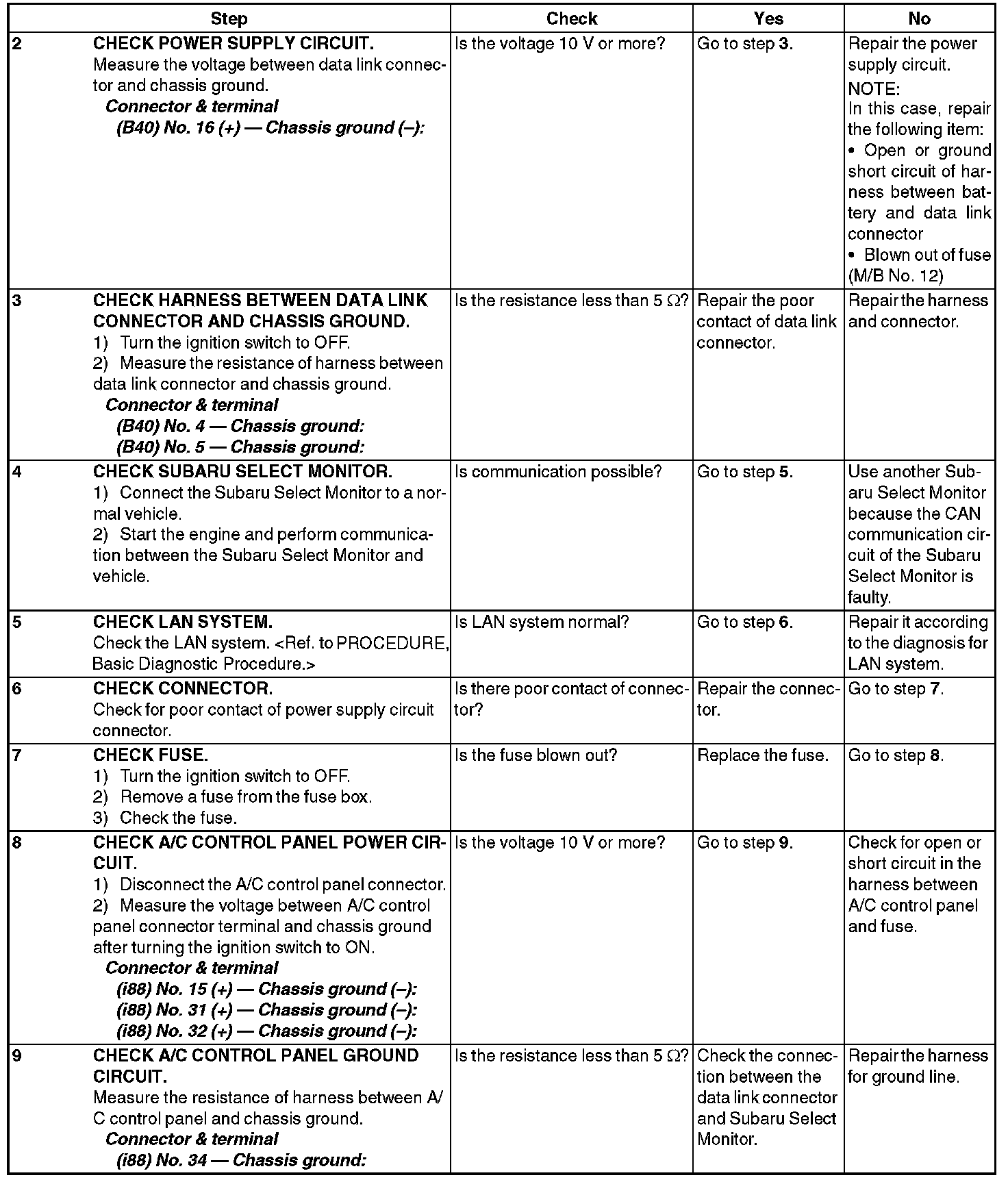 - Communication failure between Subaru Select Monitor and A/C control pane