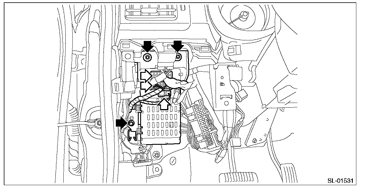 1. Remove the knee airbag module.