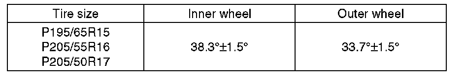 1) Check that the left and right wheel steering angles are within specification.