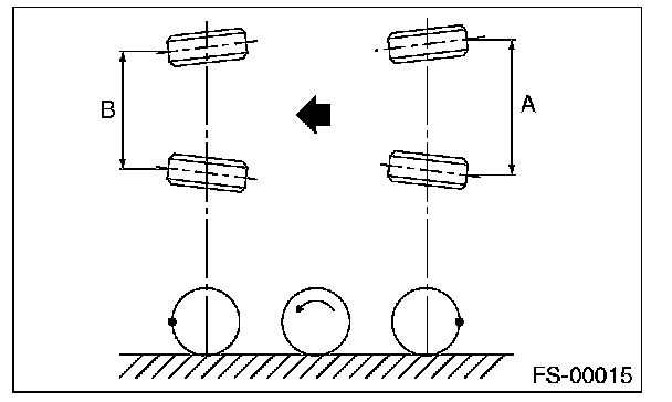 2) Place a mark at the center of both left and right tires, and measure distance "A" between the marks.