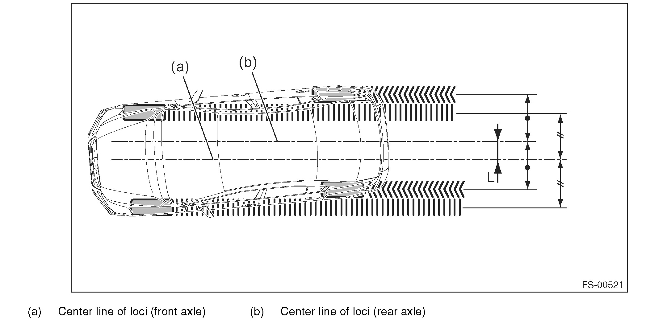 4) Measure distance "L" between the center lines of the axle loci.