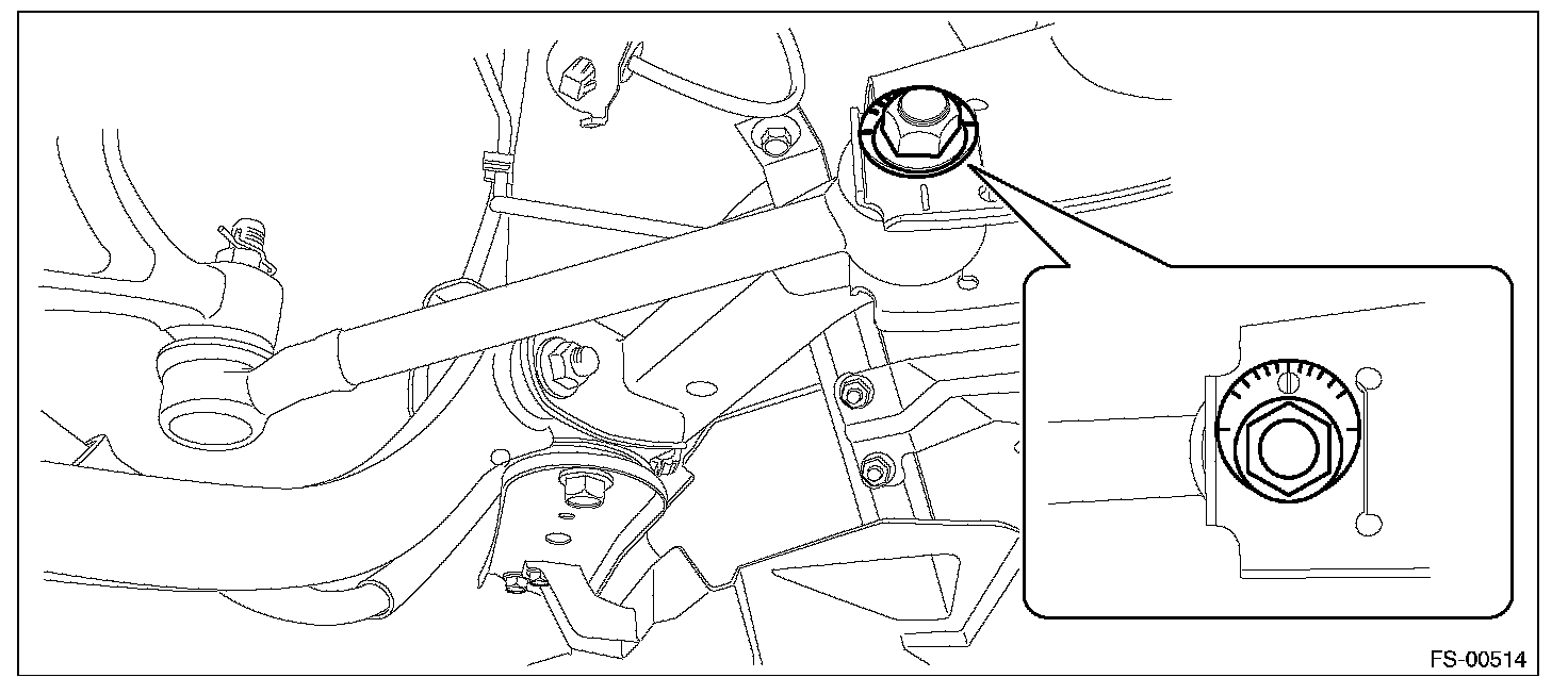 1) Make thrust angle adjustments by turning the toe-in adjusting bolts of the rear suspension equally in the same direction.
