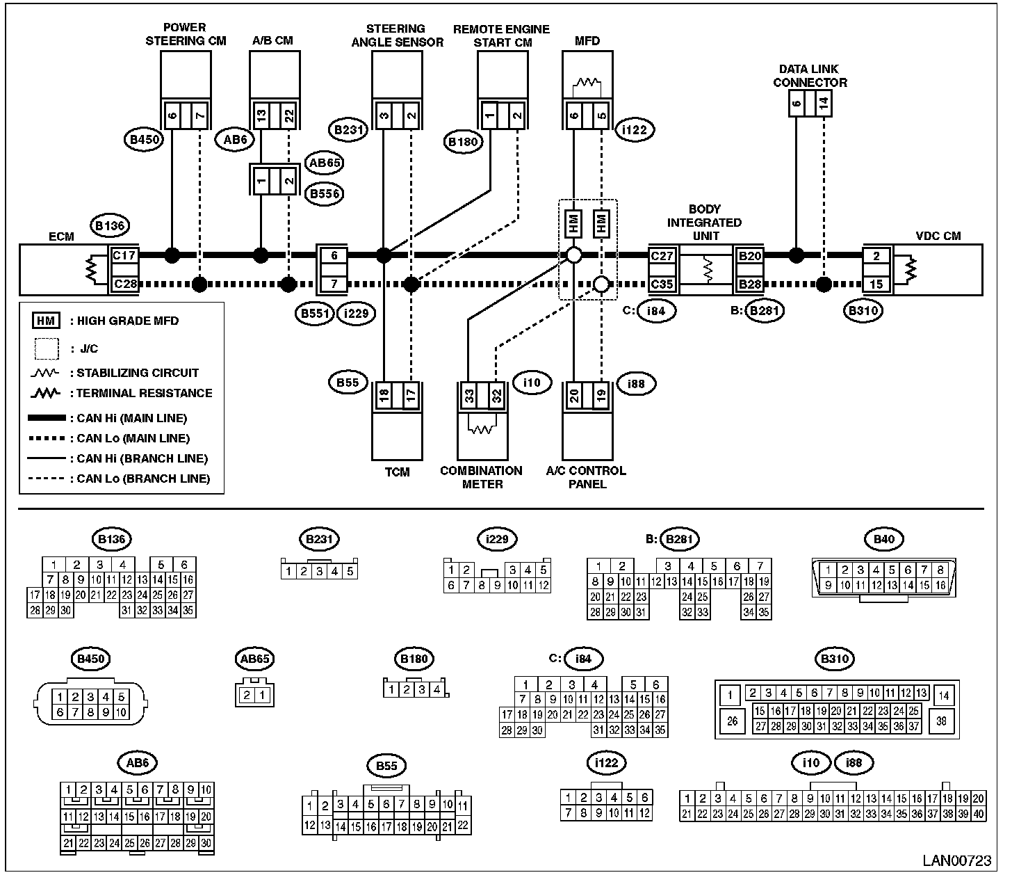 NOTE: When measuring the resistance of CAN communication circuit, measure it in sleep status.