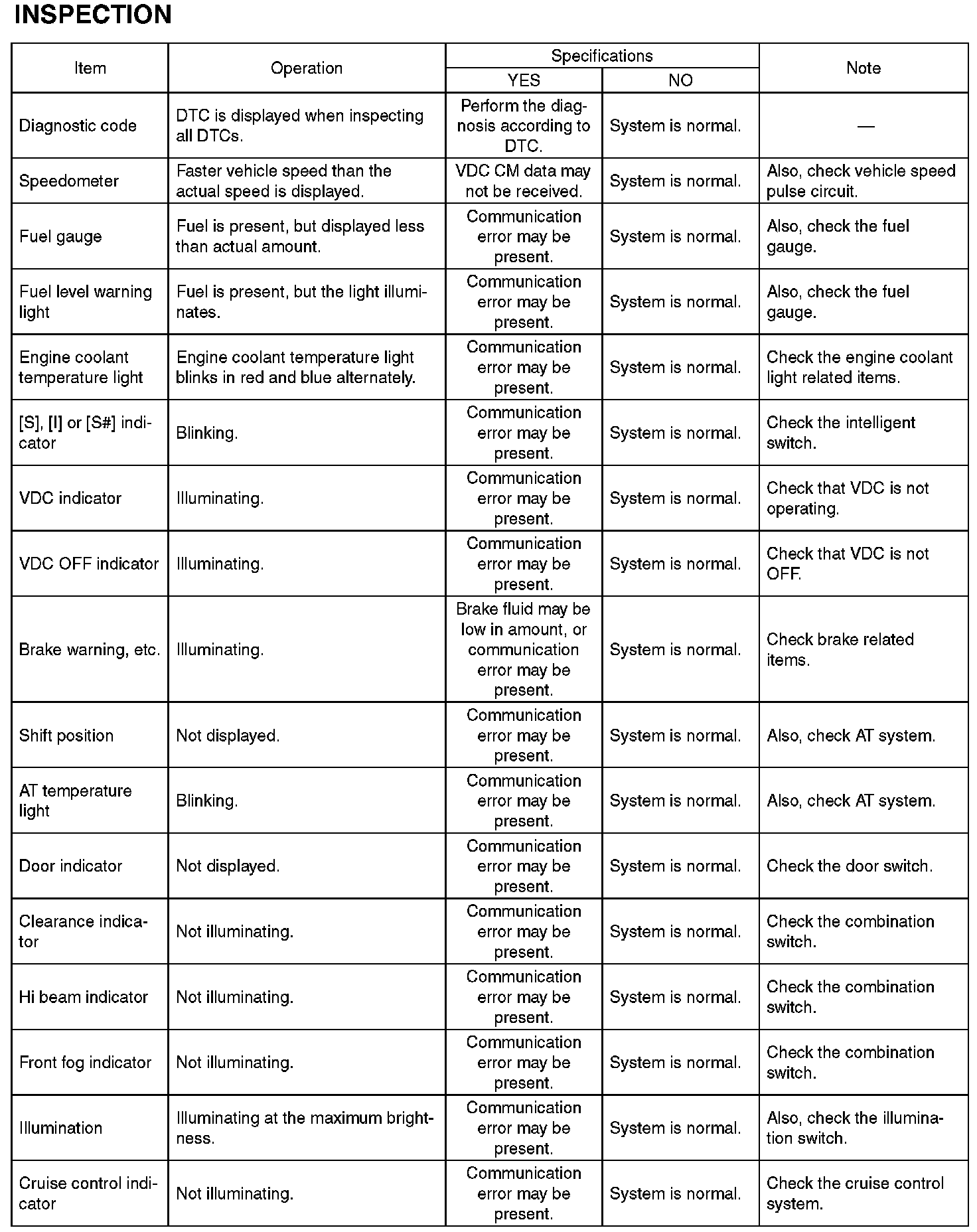 General Diagnostic Table