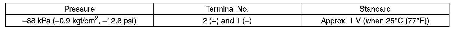 NOTE: When vacuum occurs at the pressure port of manifold absolute pressure sensor, the voltage will drop from the value as in step 3). When positive pressure occurs, on the other hand, the voltage will rise.