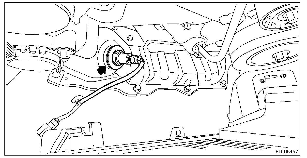 7. Apply spray-type lubricant to the threaded portion of front oxygen (A/F) sensor, and leave it for one minute or more.