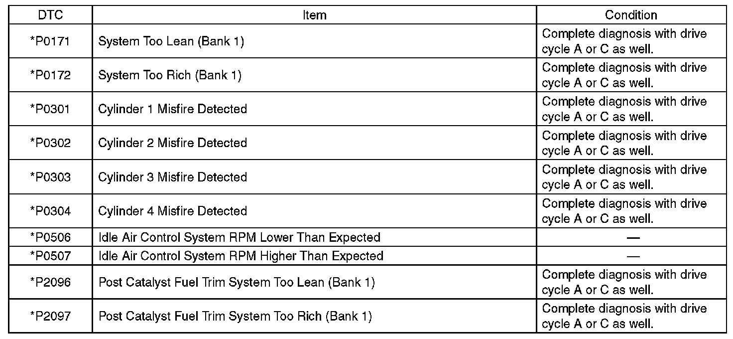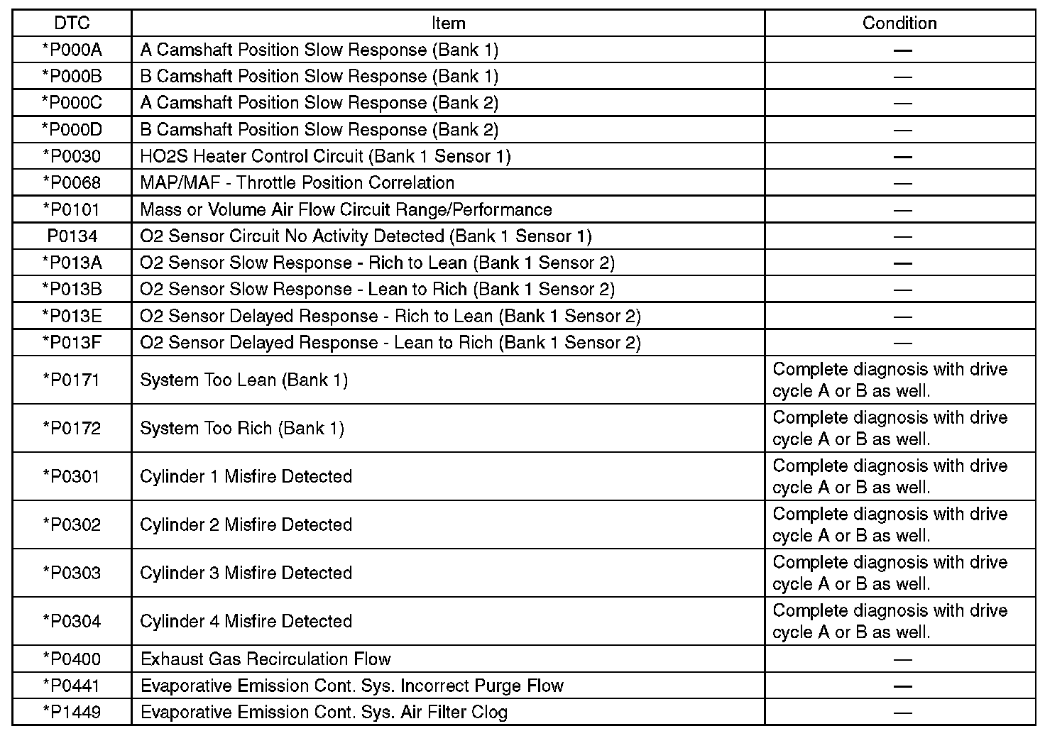 - Perform the drive cycle twice if the DTC in the list is marked with *.After completing the first drive cycle, stop the engine and perform second diagnosis in same condition.