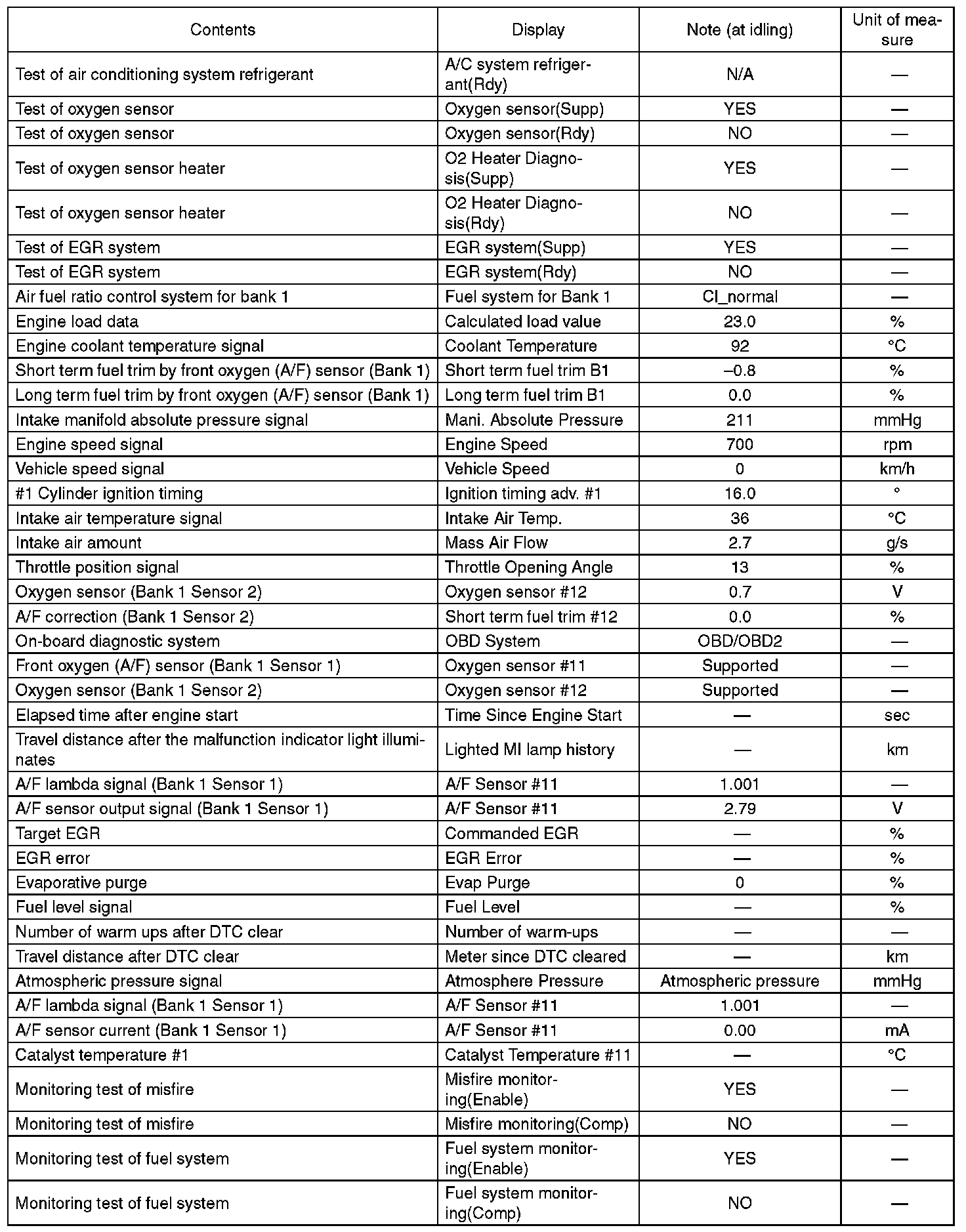 3. READ CURRENT DATA FOR ENGINE (OBD MODE)
