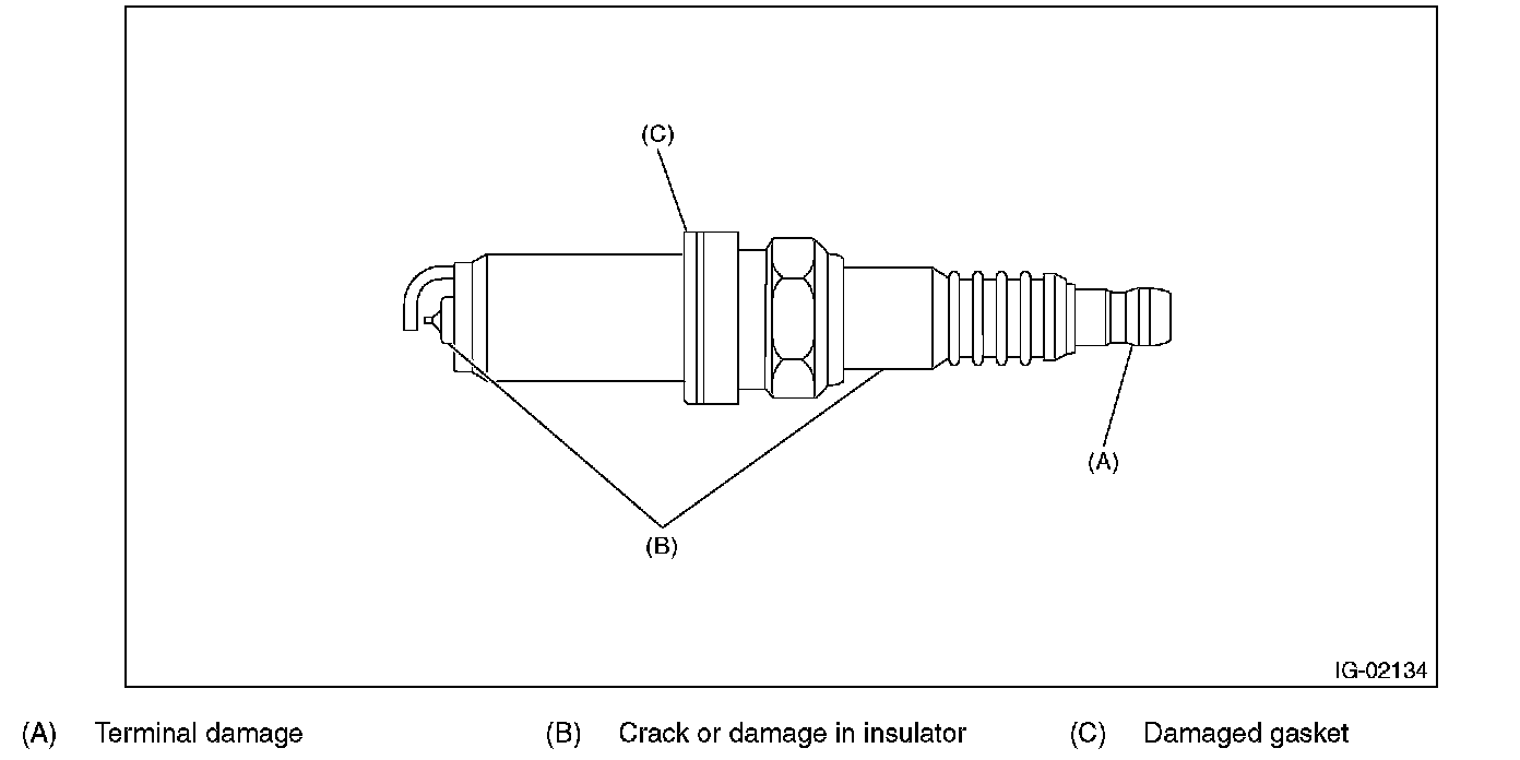 2. Check the spark plug electrode and condition of the insulator. If abnormal, check and repair the cause and replace the spark plug.
