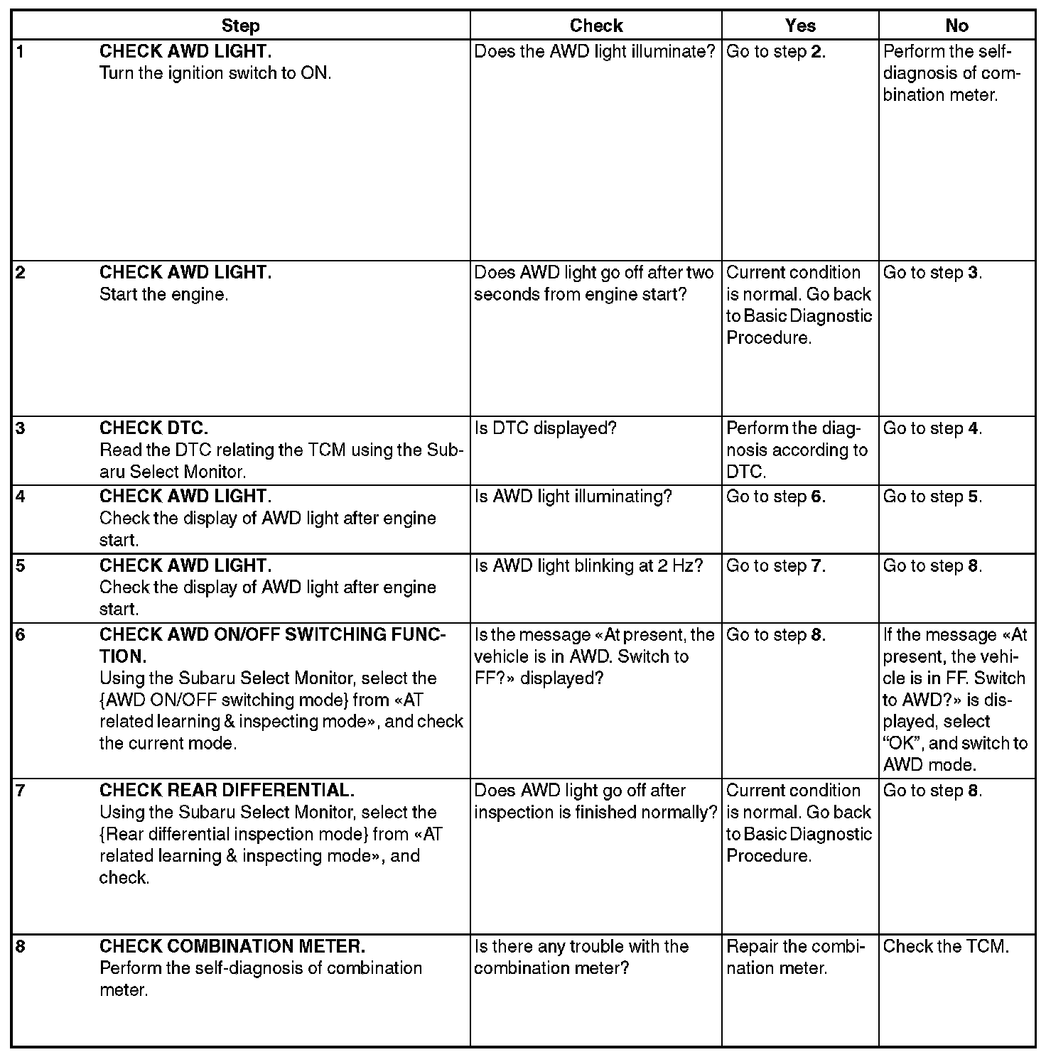 If the AWD light does not illuminate, or illumination patterns are not as above, check the AWD light circuit.