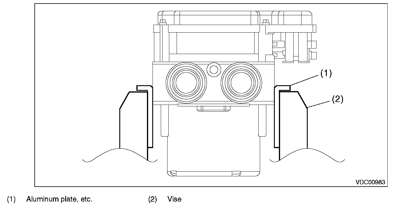 2) To prevent entry of foreign objects and brake fluid leakage, plug the oil pressure port of the VDCCM&H/U using a screw plug, etc.