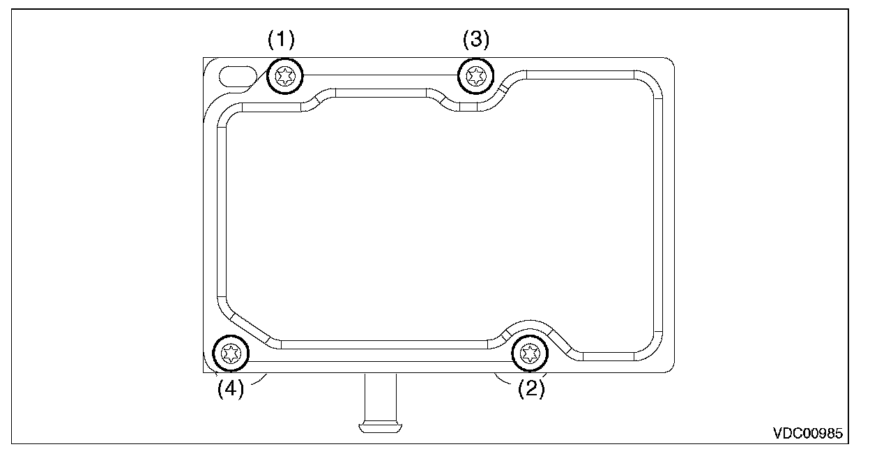 11) Using a TORX(R) bit E5, tighten the screws in the order of (1) through (4) again.
