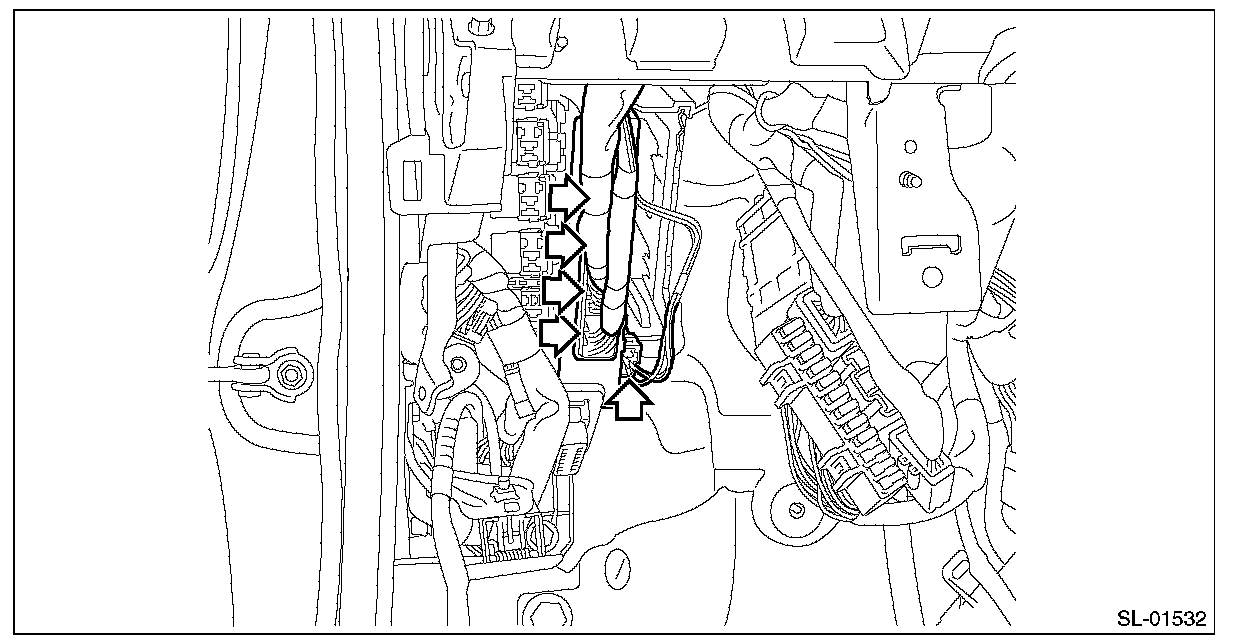 - Do not allow harness and connectors to interfere or get tangled up with other parts.