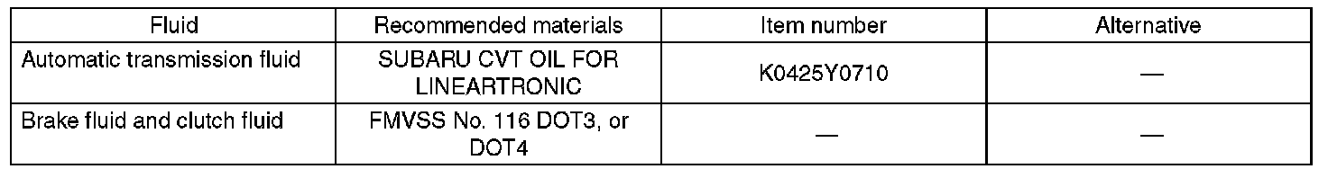 Use the fluids specified in the table below. Do not mix two different kinds or makes of fluid.