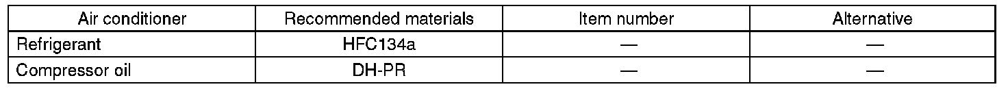 Standard air conditioners on Subaru vehicles use HFC134a refrigerant. Do not mix it with other refrigerants. Also, do not use any air compressor oil except for DH-PR.