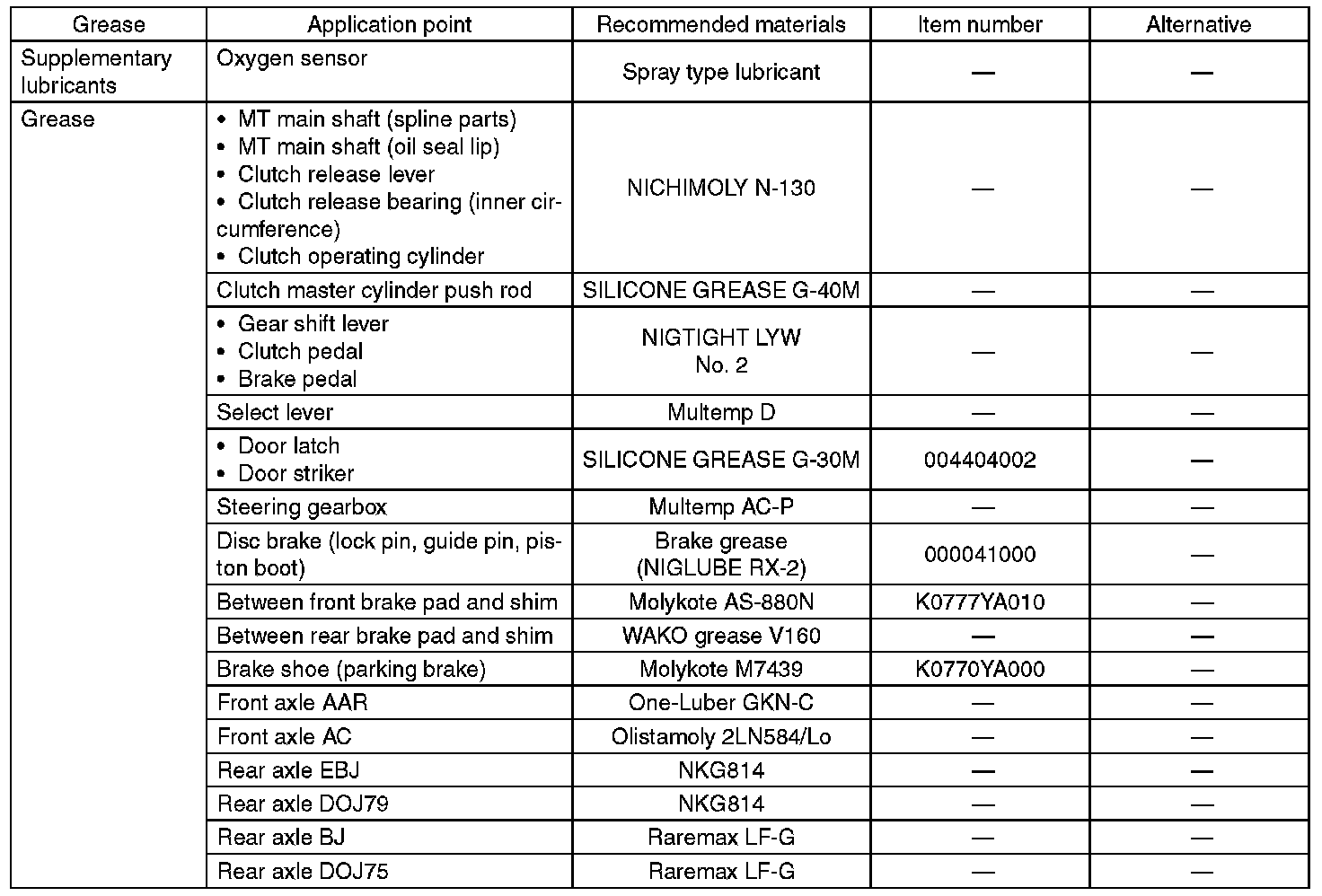 Use the lubricants shown in the table below, or equivalent. See the table below to choose the correct SAE viscosity.