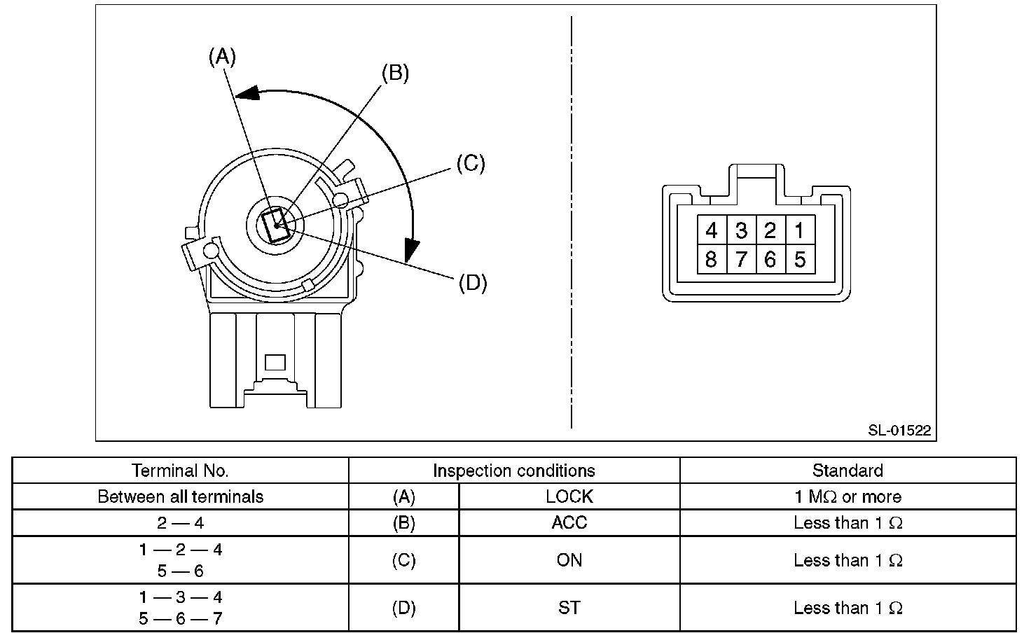 2. Replace the ignition switch assembly if the inspection result is not within the standard.