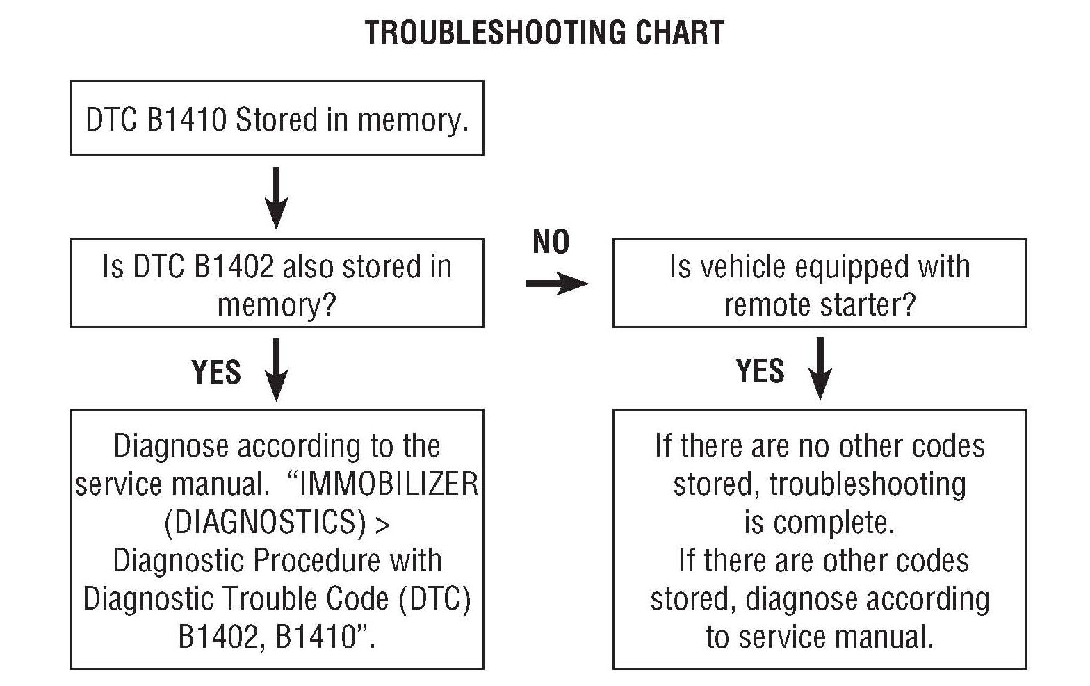 Following the troubleshooting chart will avoid needless replacement of the key (transponder), the immobilizer antenna and the remote engine starter.