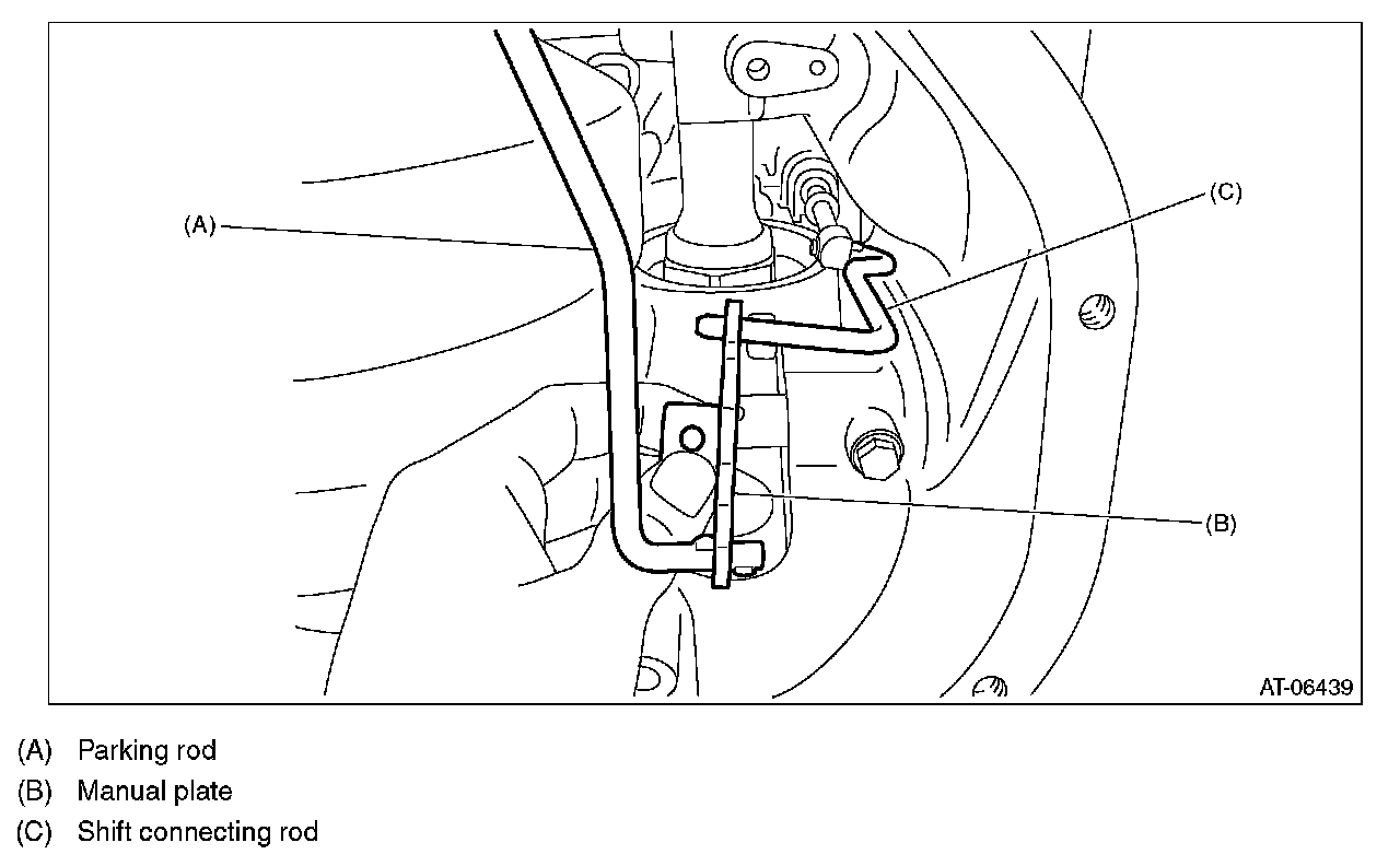 6) Insert the parking rod into the transmission case, and install the shift connecting rod of the manual valve to the manual plate.