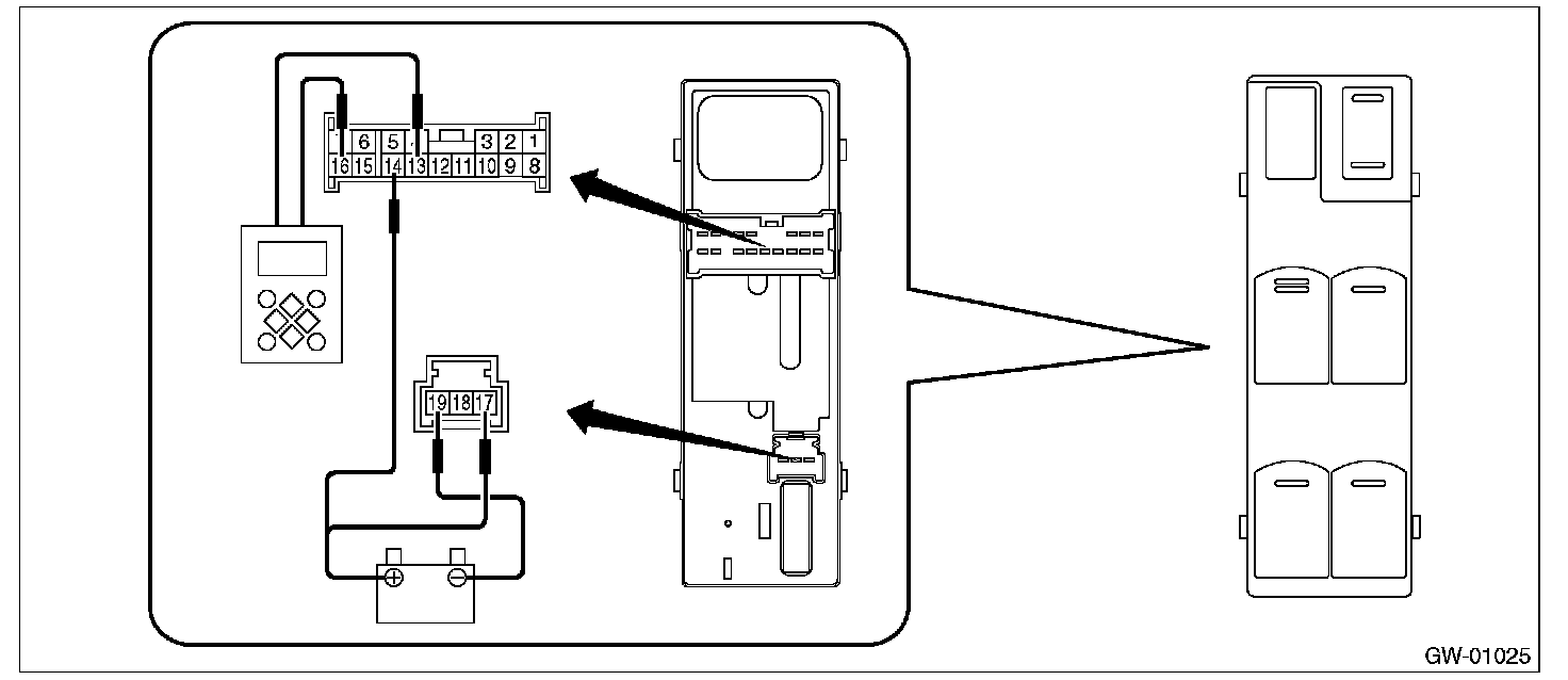 2. Connect the battery and the Subaru Select Monitor to the switch - power window main terminal.
