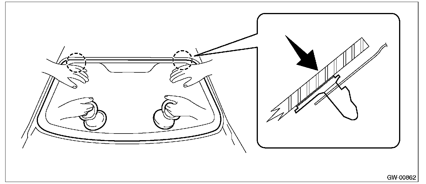 - Cutting of adhesive part should be started from an area with wider gap between the glass - front window and the body.