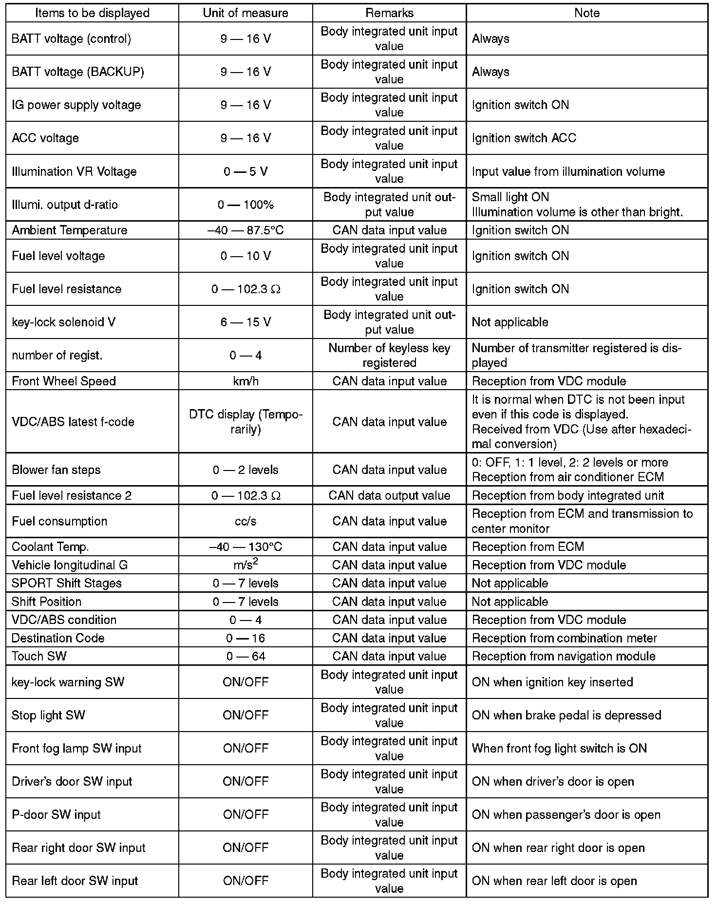 CAUTION: Body integrated unit is core of LAN system, and also can select the function of all vehicle system control. It is possible to control the original functions of vehicle when registrations of body integrated unit, or User Customizing are corresponded to vehicle equipment.