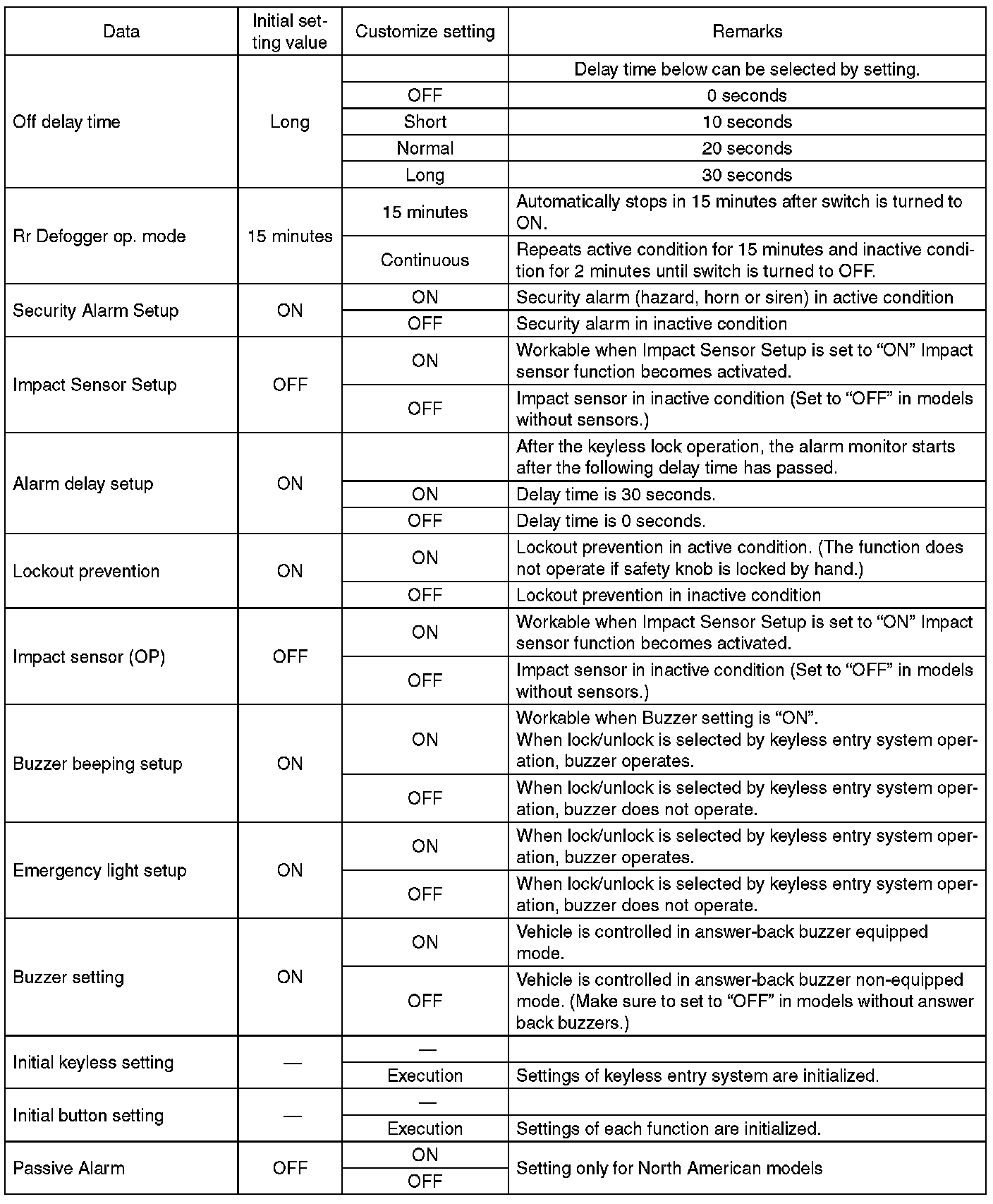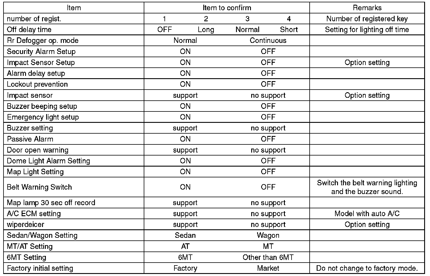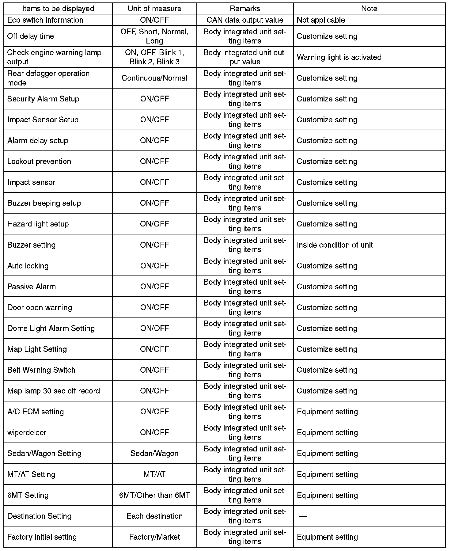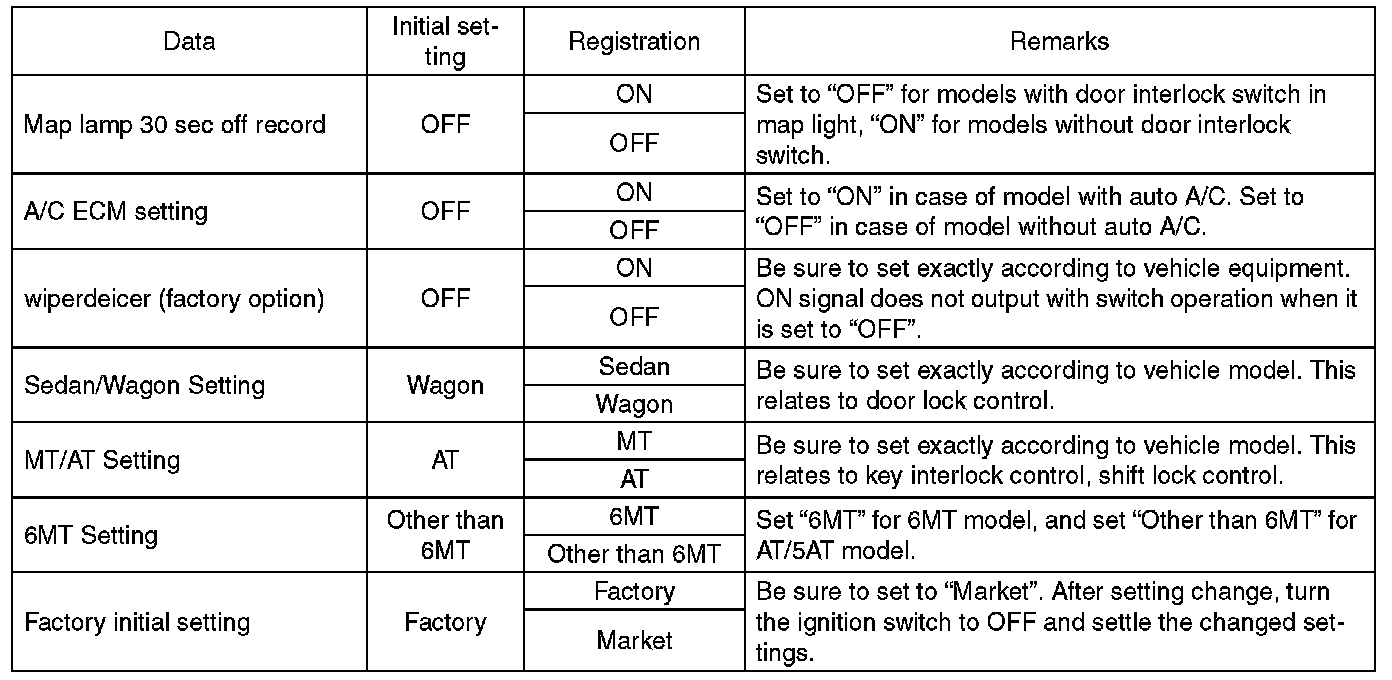 - Be sure not to change Factory initial setting except when installing a new body integrated unit.