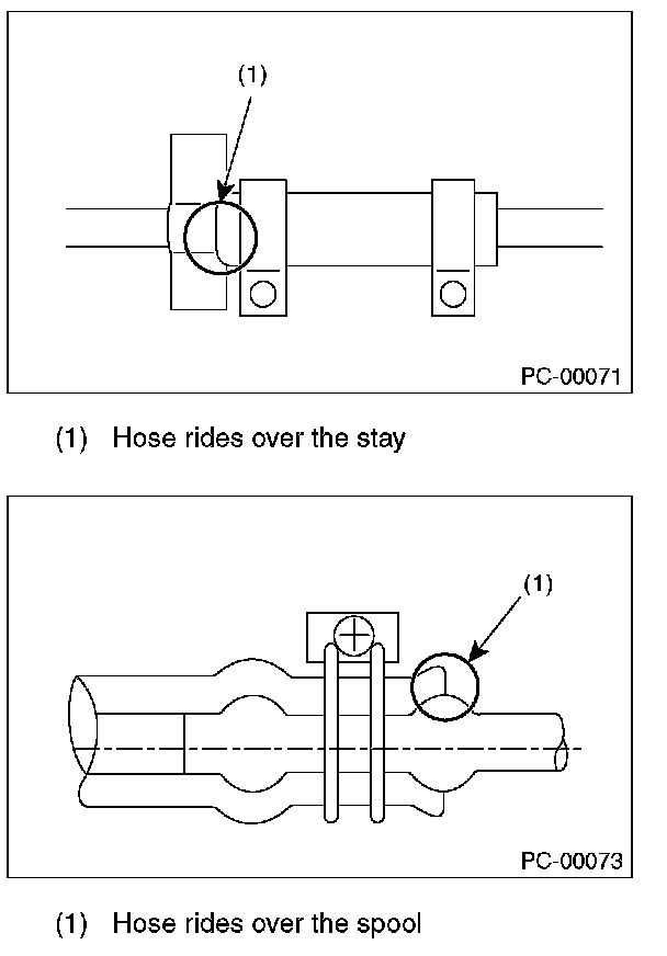 - Check if the surface and the inner surface of the hose are damaged, cracked, bend, hardened, softened, swelled, peeled or deformed due to the adherence or the entry of the foreign matter by bending the hose. Replace with the new part if faulty.