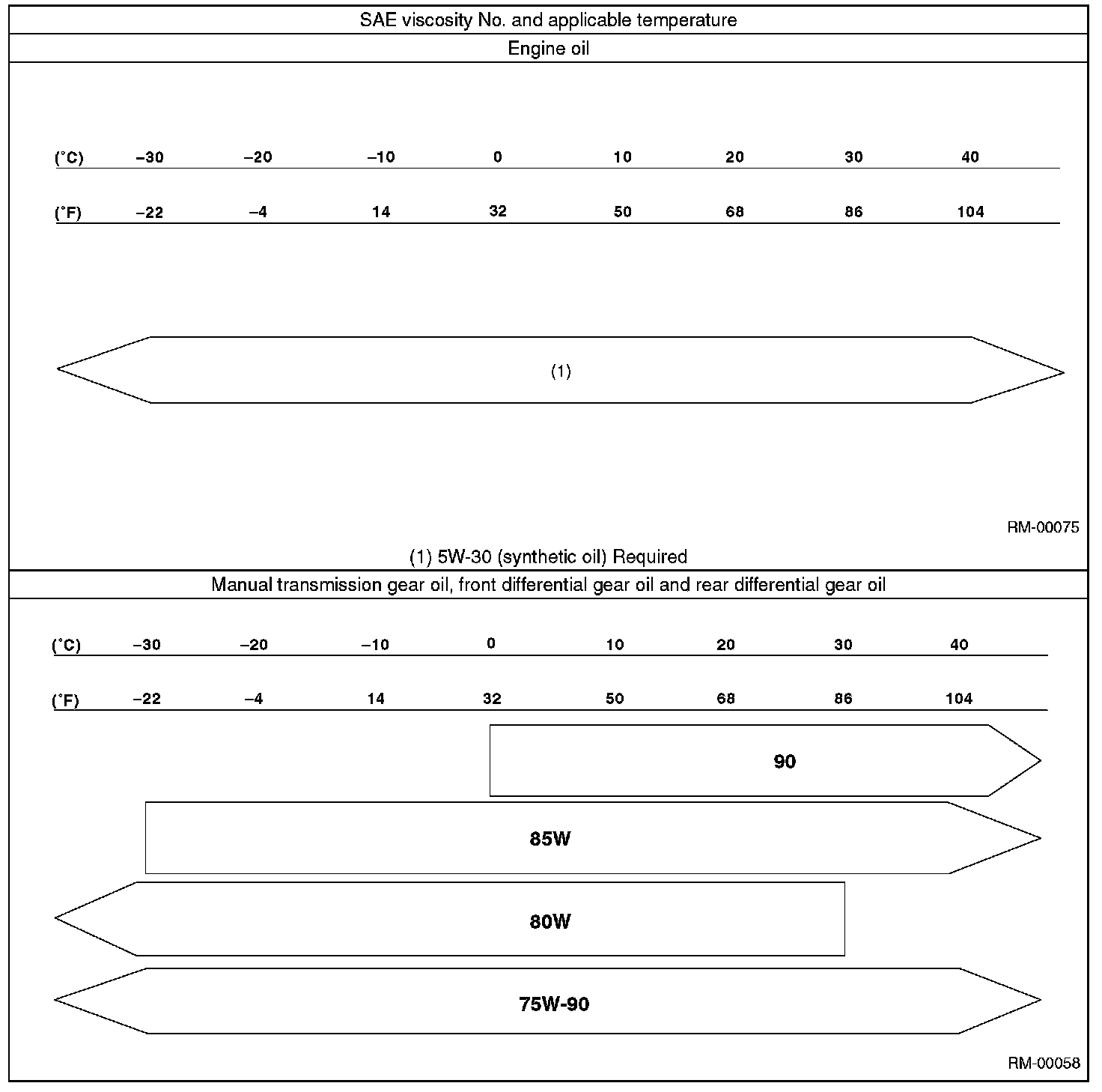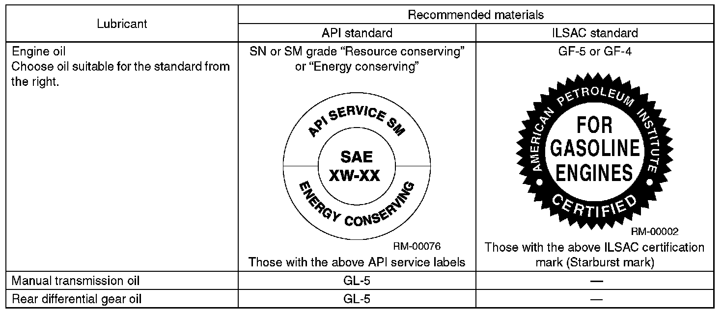 Use the lubricants shown in the table below, or equivalent. See the table below to choose the correct SAE viscosity.