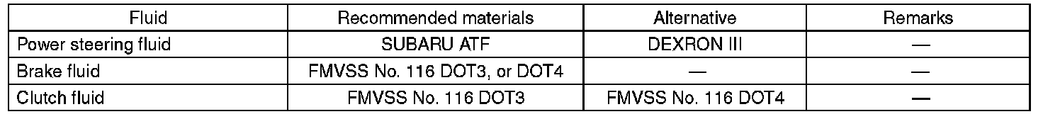 Use the fluids specified in the table below. Do not mix two different kinds or makes of fluid.