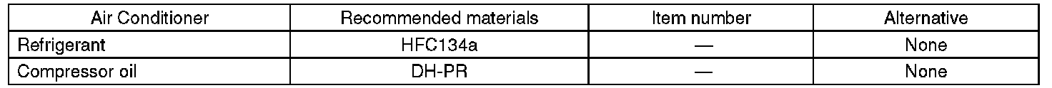 Standard air conditioners on Subaru vehicles use HFC134a refrigerant. Do not mix it with other refrigerants. Also, do not use any compressor oil except for DH-PR.