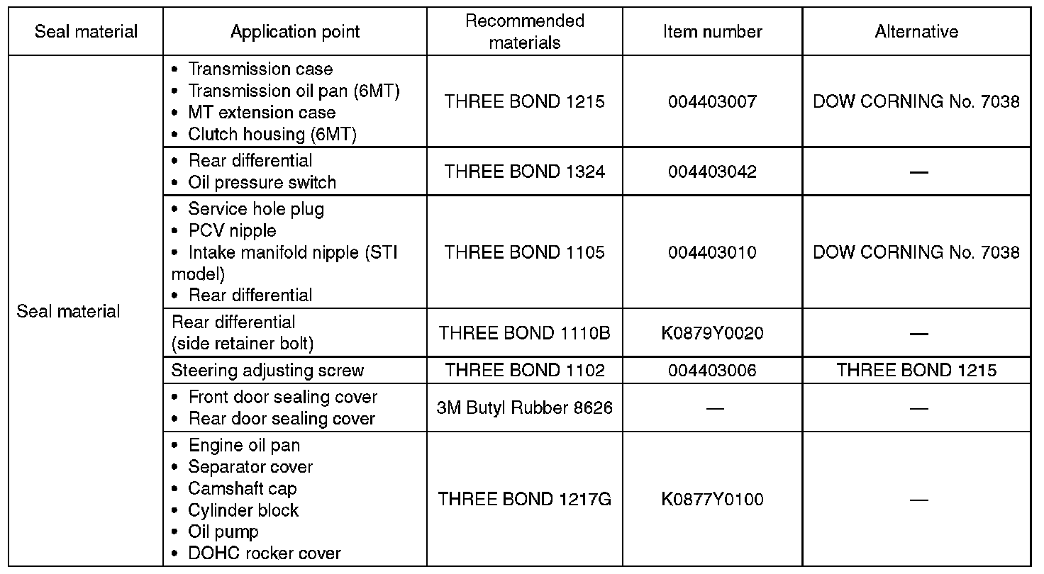 To insure the best performance, always use the specified oil, gasoline, adhesive, sealant, etc. or a substitute of equivalent quality.