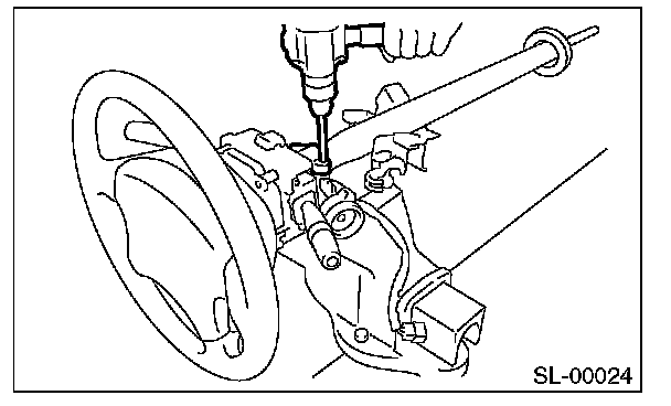 3. Secure the steering column in a vise. Remove the bolt with a drill.