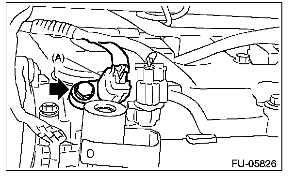 2. Disconnect the connector (A) from the camshaft position sensor RH, and remove the camshaft position sensor RH from the rear side of the cylinder head.