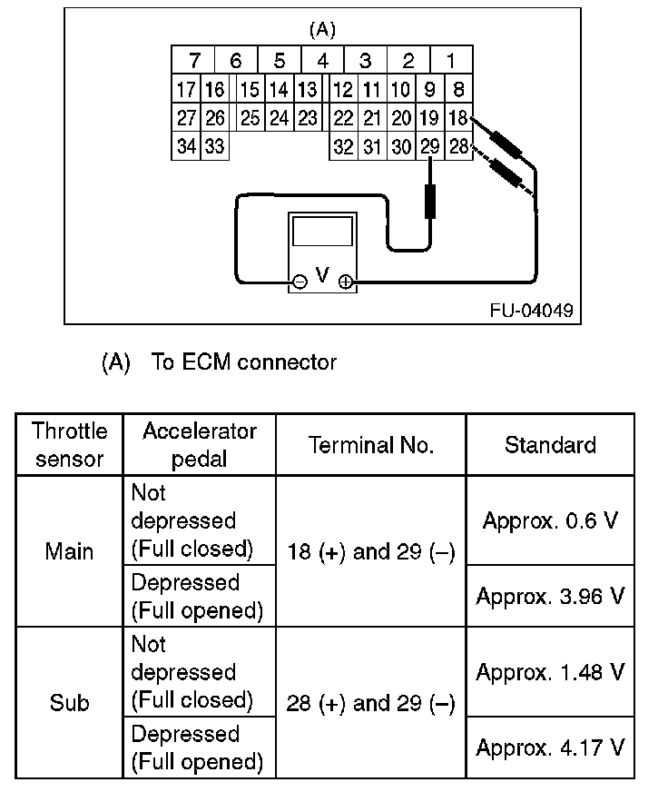 THROTTLE SENSOR INSPECTION (METHOD WITH CIRCUIT TESTER)