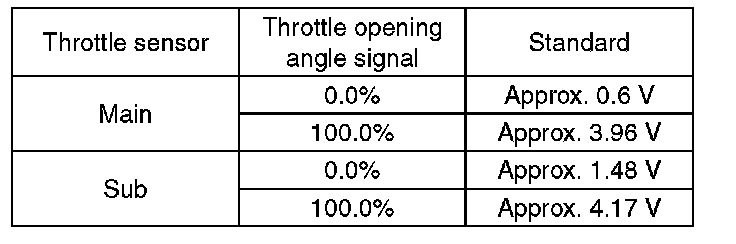 2. Read the throttle opening angle signal and voltage of throttle sensor using Subaru Select Monitor. Subaru Select Monitor