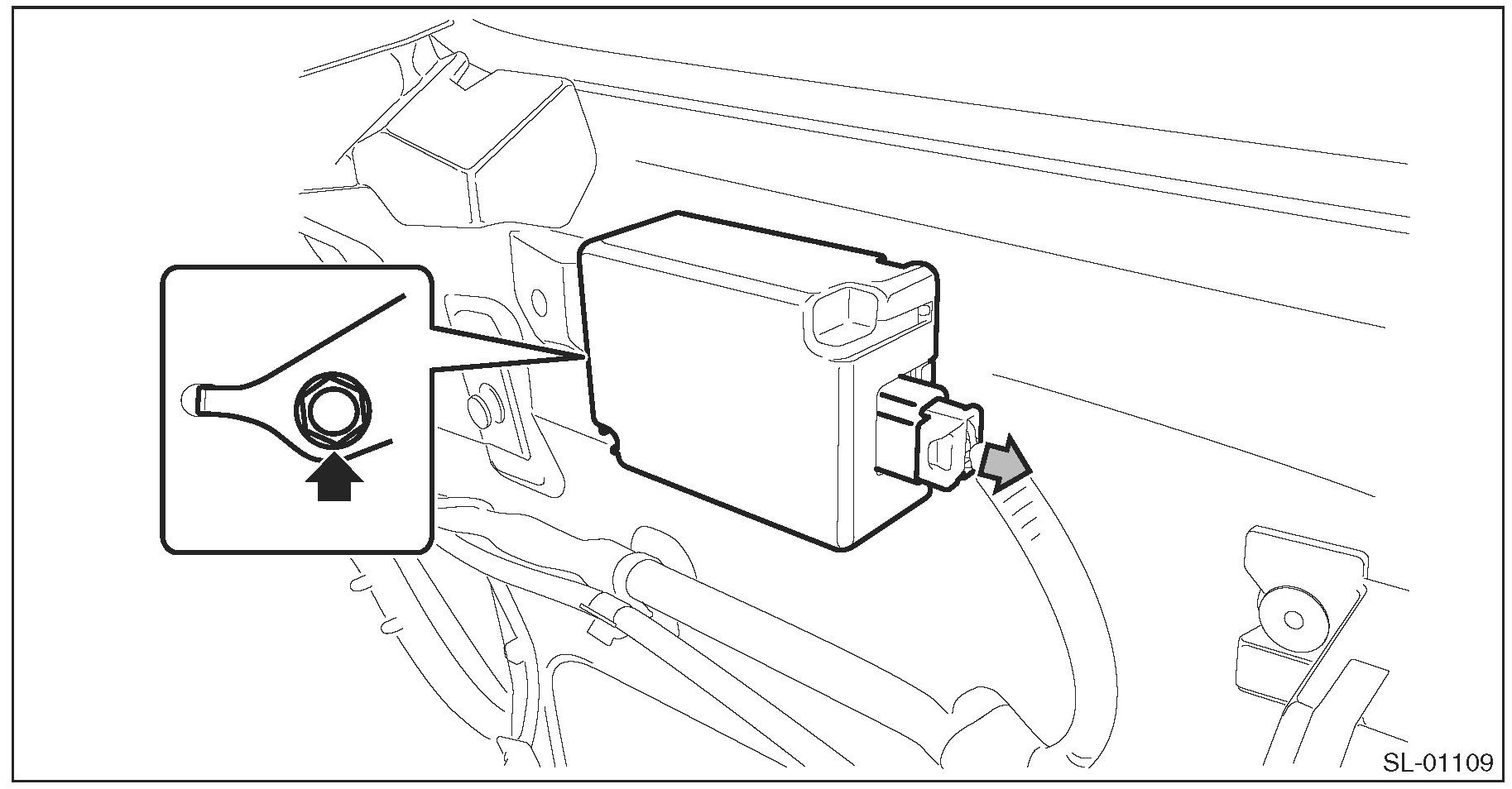 2. Remove the bolt and remove the keyless entry control module.