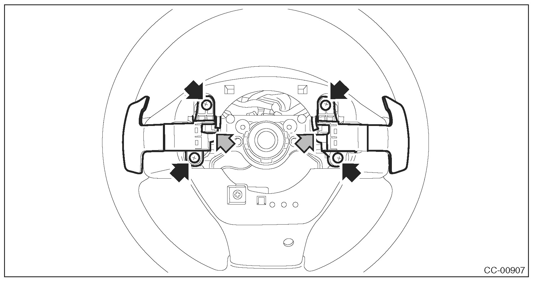 1. Remove the screw, disconnect the connector and remove the paddle shift switch. (Model with paddle shift)