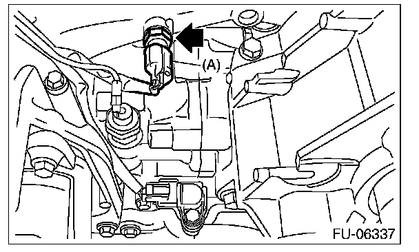 5. Disconnect the connector (A) from the engine coolant temperature sensor, and remove the engine coolant temperature sensor.