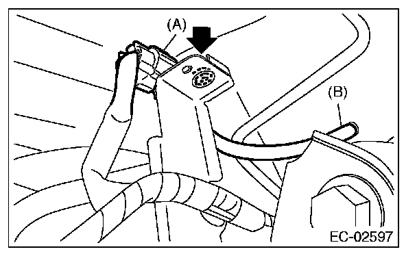 5. Pull out the vacuum hose (B) from vehicle.