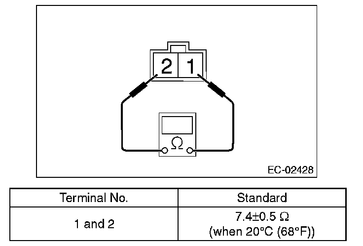 2. Measure the resistance between the oil flow control solenoid valve terminals.