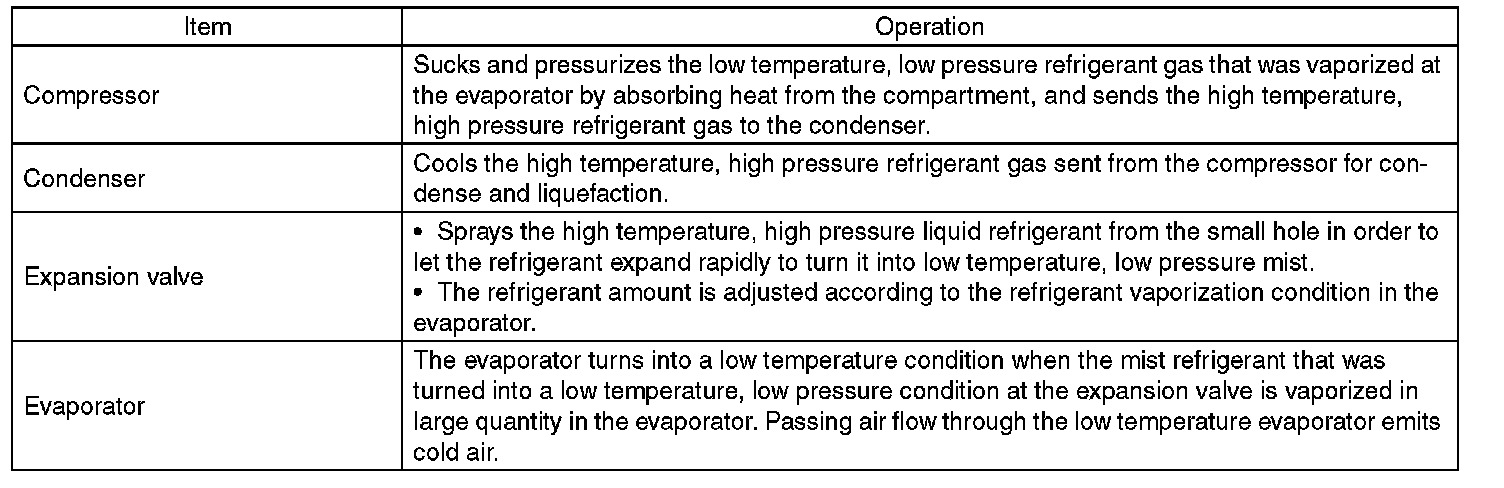 The cooling system cools down the compartment by using the pipes connecting parts and cycling the evaporable liquid (refrigerant) within the sealed system in a repeated process of "vaporization - liquefaction - re-vaporization".