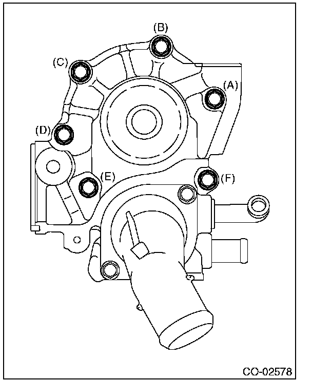 When installing the water pump, tighten the bolts in two stages in alphabetical sequence as shown in figure.