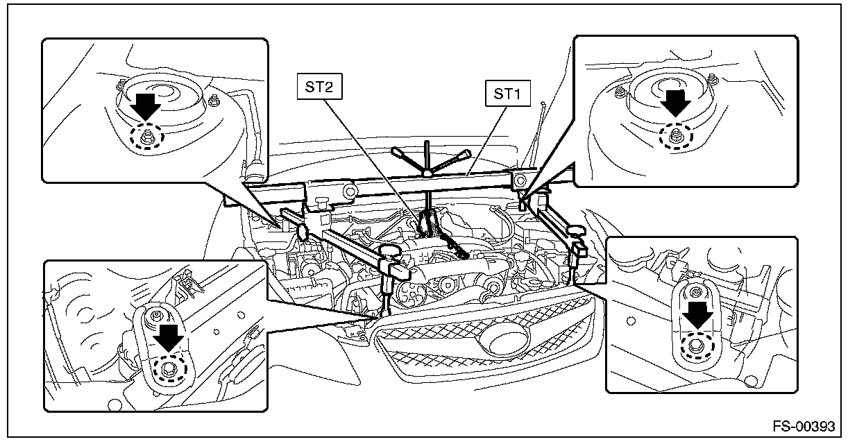 Set the arms of ST (ENGINE HANGER) at the locations shown in the figure.
