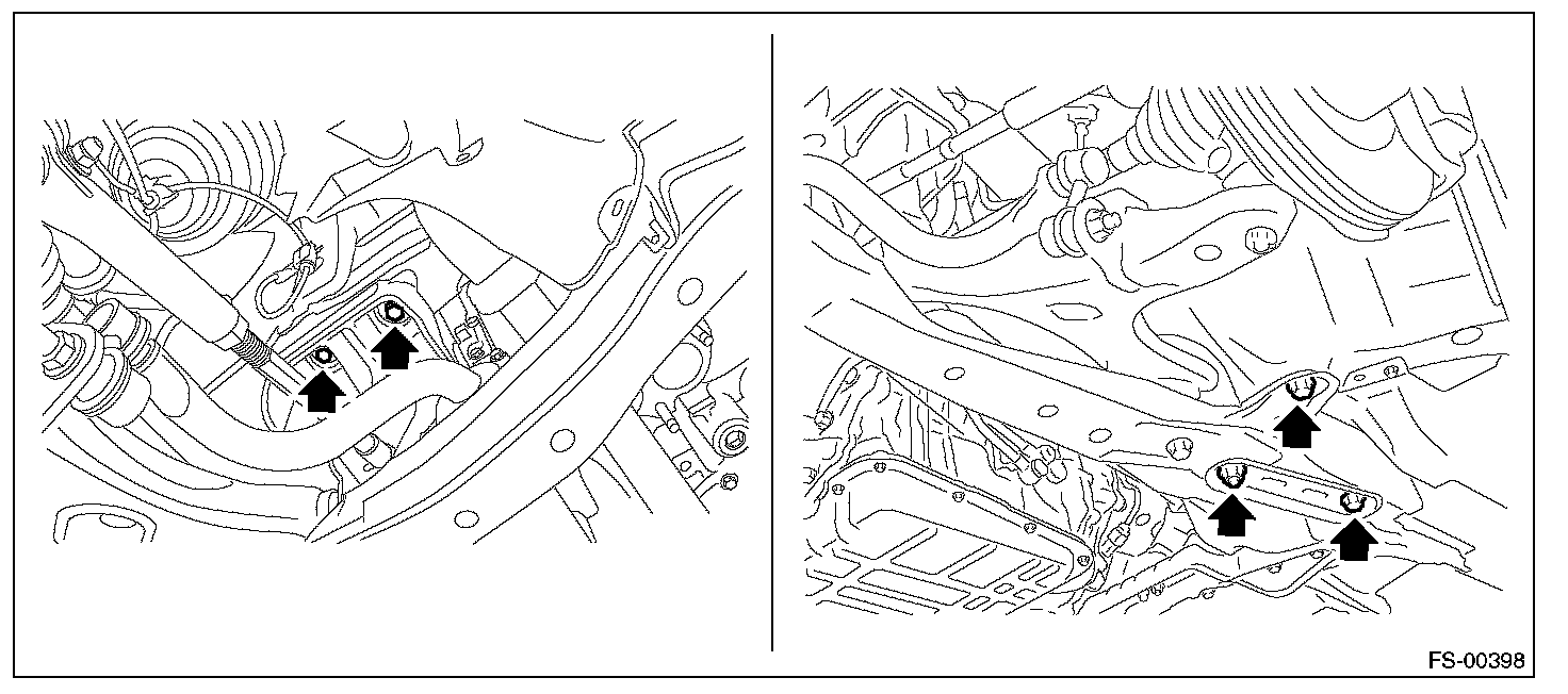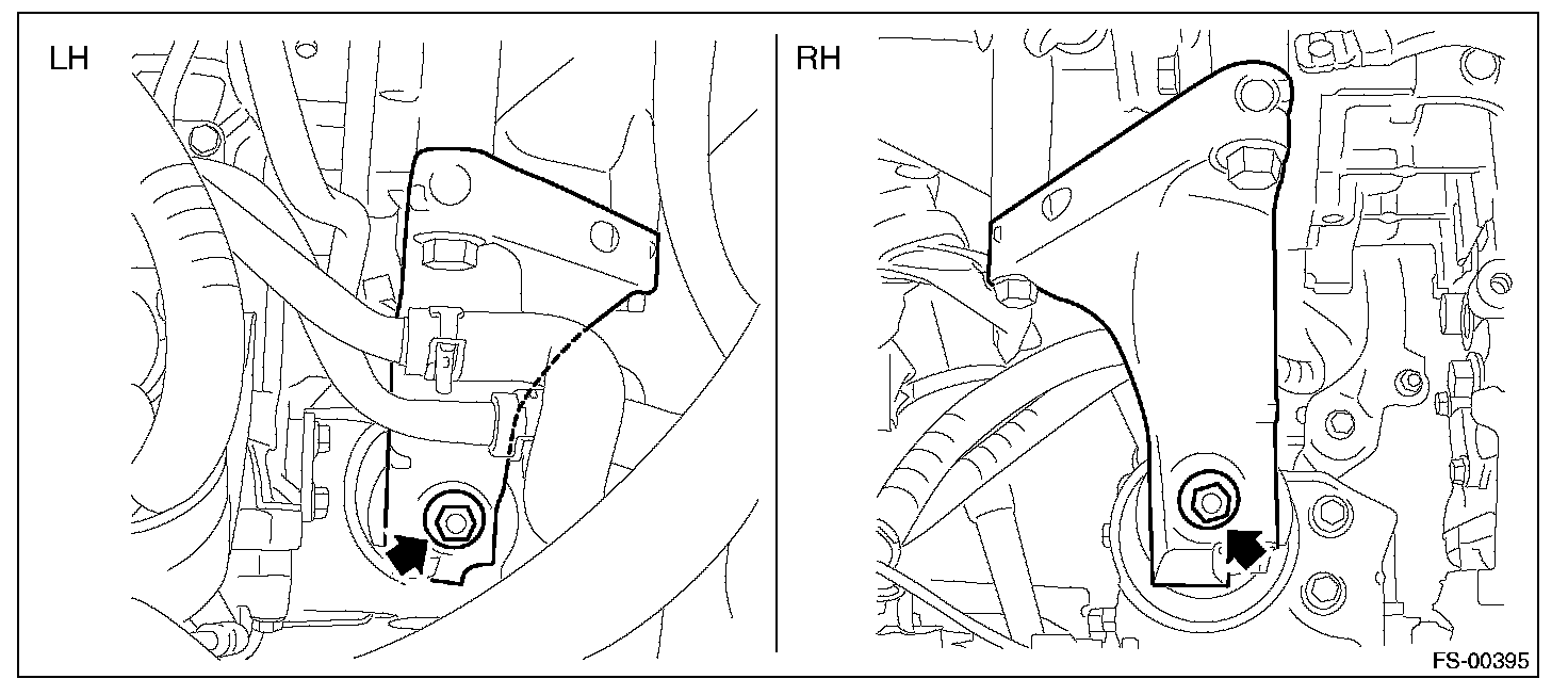 12) Replace the engine hanger installed on the engine with the SUBARU genuine engine hanger (H4 nonturbo model) or ST (H6 model).