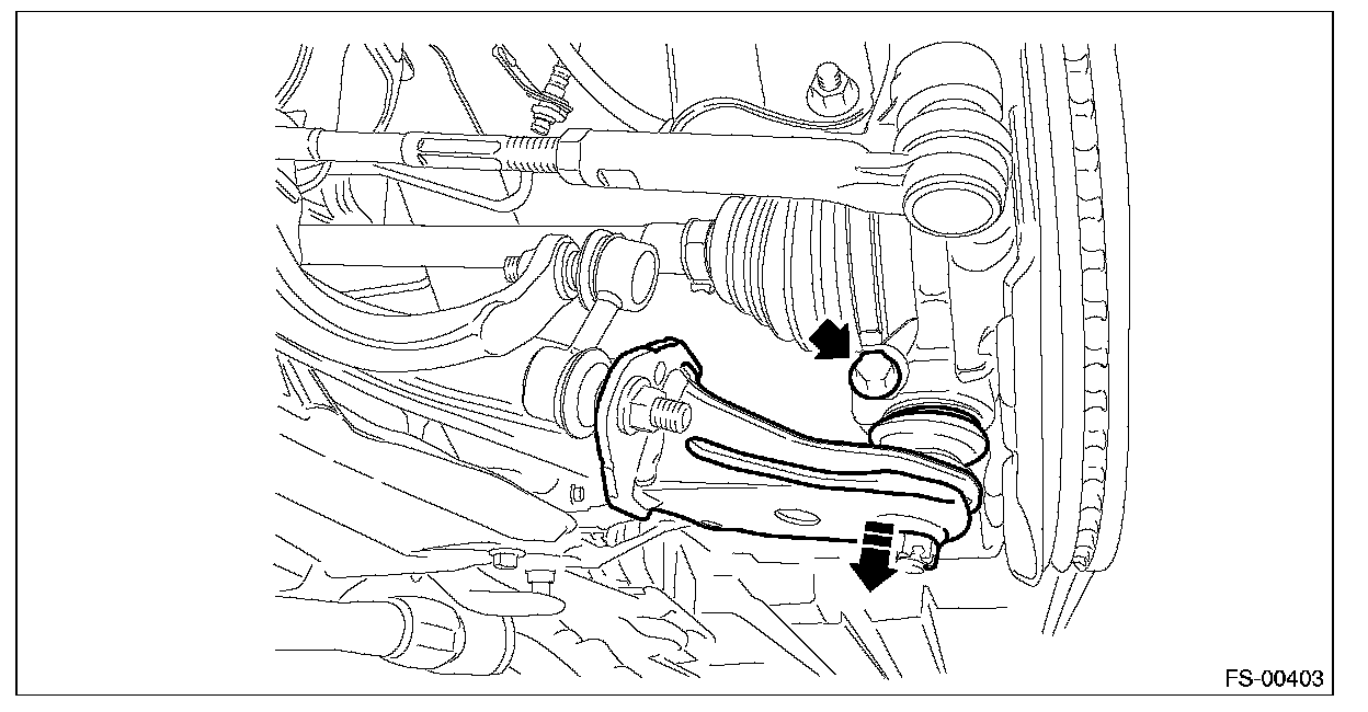 (2) Remove the bolt from the front cushion rubber, and remove the bolt securing the front of the cradle.